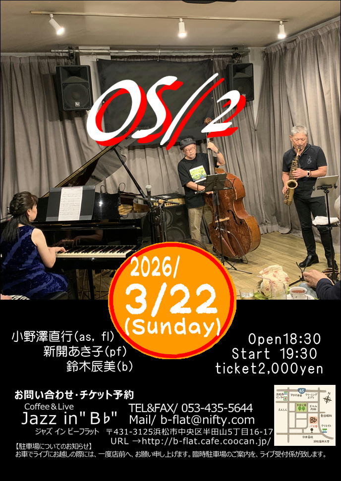 小野澤直行(sax)新開あき子(pf)鈴木辰美(b)