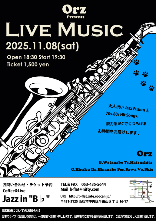 山本譲治(sax)山下泰範(gt)近藤雅(b)渥美克武(dr)